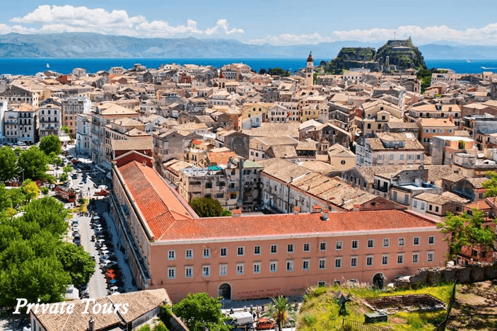 Corfu Town is located on a narrow peninsula that lies halfway down the island’s east coast. Its location was chosen for its natural harbor and two peaks that were ideal for fortress construction. Two majestic castles that had sweeping views of the sea and the Greek mainland defended the little medieval town that developed during the Angevin era (1267–1388), which was encompassed by high defensive walls. Nonetheless, Corfu Town truly thrived during the Venetians, who ruled for around 400 years (from 1386 to 1797).